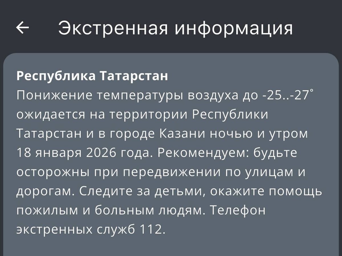 Завтра, 18 января, на территории республики ожидается понижение температуры воздуха до -25..-27°.