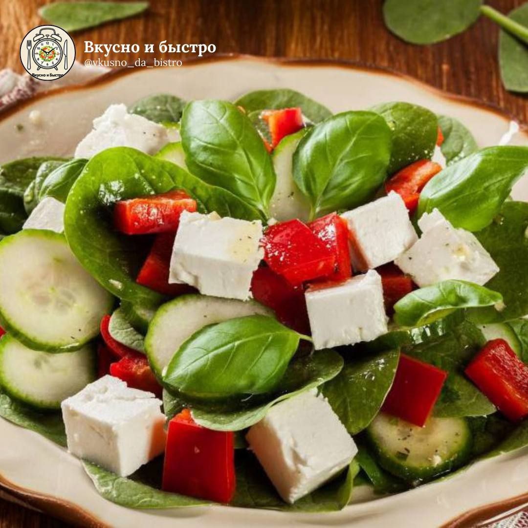 #салат #10мин 🕒 Время приготовления: ~10 минут Порции: 1–2 Сложность: легко 🧾 Ингредиенты: 🟠Болгарский перец — 1 шт. 🟠Огурец — 1 шт. 🟠Брынза — 50 г 🟠Салатные листья — 50 г 🟠Оливковое масло — 1 ст. л. 🟠Соль, чёрный перец — по вкусу 🍴Приготовление: 1. Болгарский перец и брынзу нарежьте аккуратными кубиками. 2. Огурец нарежьте кружочками или полукружьями. 3. Салатные листья порвите руками. 4. Соедините все ингредиенты в миске. 5. Добавьте оливковое масло, соль и перец, аккуратно перемешайте. Вкусно и Быстро | Мы в Мах 📲