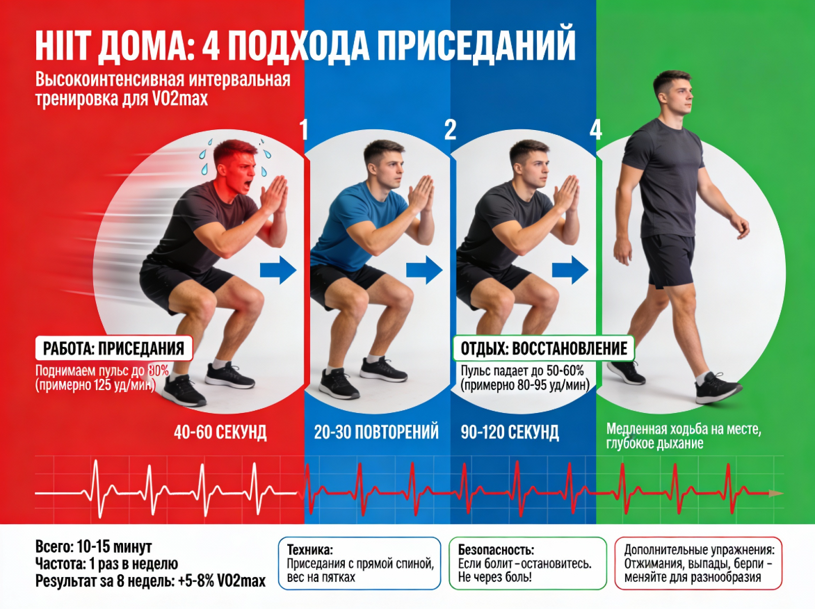 Домашняя высокоинтенсивная интервальная тренировка( HIIT) для VO2max