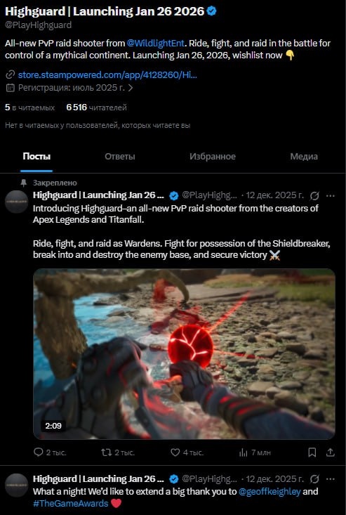 Журналист Forbes Пол Тасси узнал, что авторы Highguard «на самом деле не платили за слот в конце The Game Awards — просто организаторы шоу