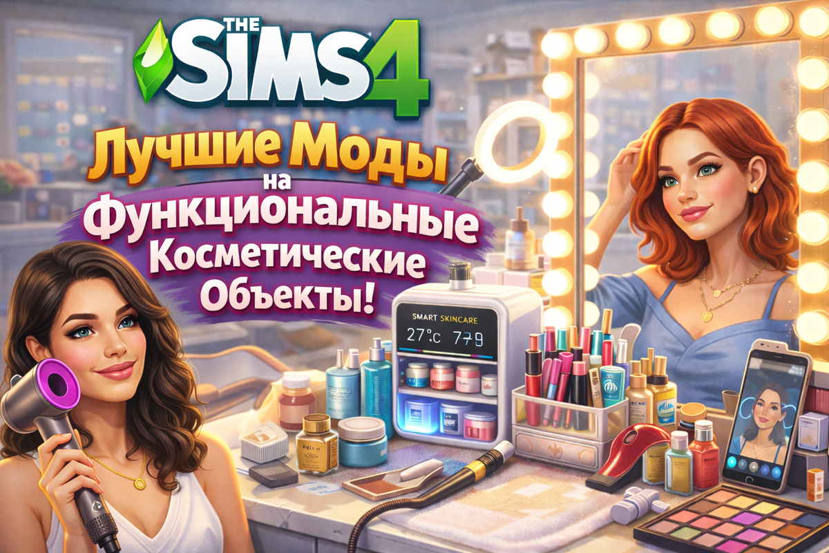 Сколько раз вы замечали, что красивые косметические объекты в The Sims 4 — это всего лишь декор? Флакончики, тюбики и зеркала есть, а смысла — ноль. Но с модами всё меняется