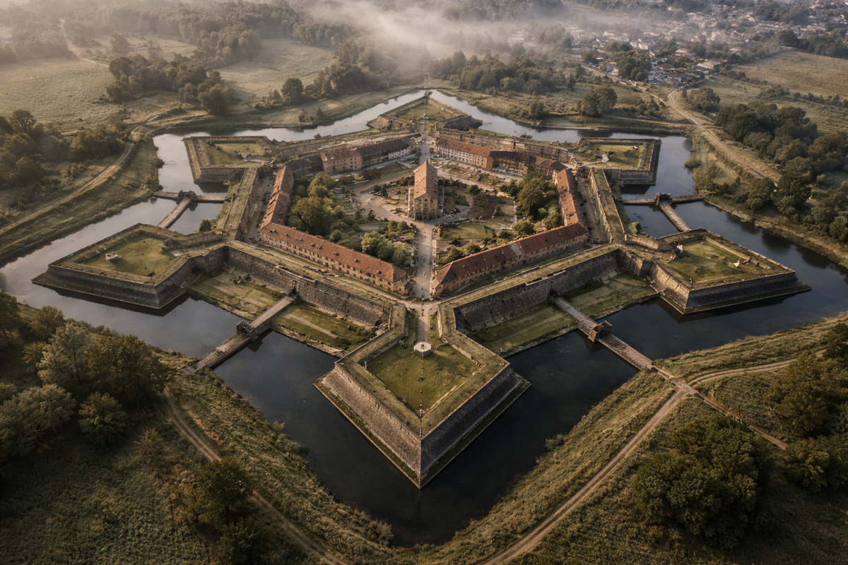 Спорная интерпретация: Возможно, звездчатые крепости действительно работали не только как физические барьеры. Геометрия создавала специфическую акустическую и оптическую среду. Радиальная планировка улиц превращала город в резонатор — звуки усиливались и искажались определенным образом. Симметрия создавала оптические иллюзии, дезориентировала атакующих. Жители крепостей регулярно сообщали о «странных ощущениях», «давящей атмосфере», «чувстве наблюдения». Может, инженеры знали о психоакустических эффектах геометрии? Средневековые строители соборов владели техниками управления звуком через форму здания. Почему военные инженеры не могли применить то же к крепостям?