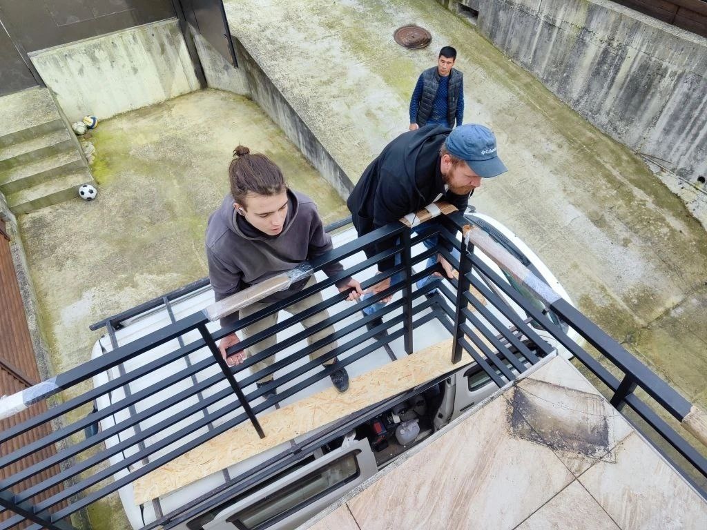 Монтаж с колес что называется , если точнее, то с крыши нашего Бусинка🤣 Монтажники: Дядя Гена ( человек- инструмент) Дарий Про Геннадия чуть позже отдельный пост от меня, заслуживает отдельного уважения в нашей компании 🫶 #перила