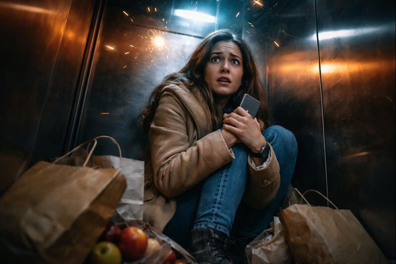 Экран телефона показывал почти полный заряд, а внутри неё всё равно рос страх, что сейчас всё отключится. Свет снова моргнул, и кабина на мгновение погрузилась в серую полутьму.