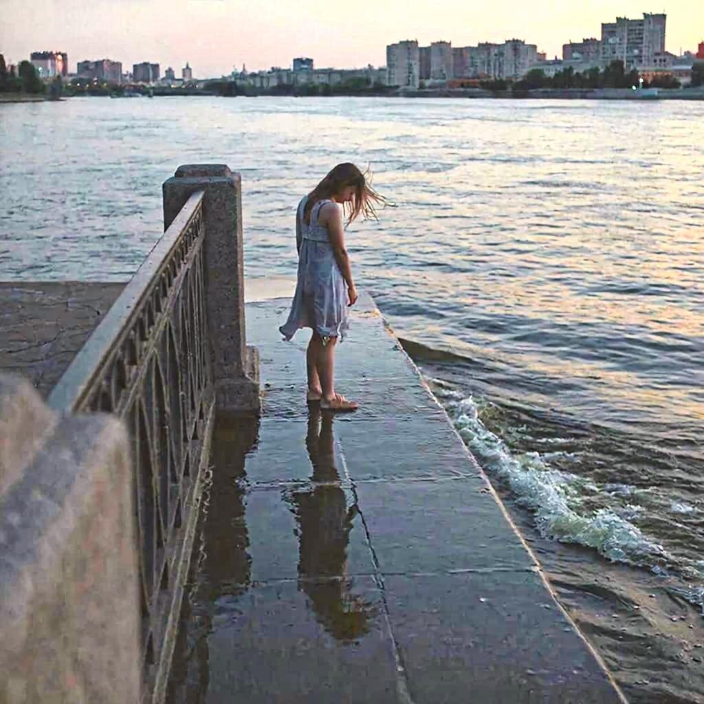 Она остановилась у парапета, вглядываясь в темнеющую воду. Волны продолжали свой вечный танец, но теперь в их ритме слышалась какая-то печальная мелодия. Она видела отражение своего одинокого силуэта в воде, и оно казалось таким хрупким, таким потерянным.