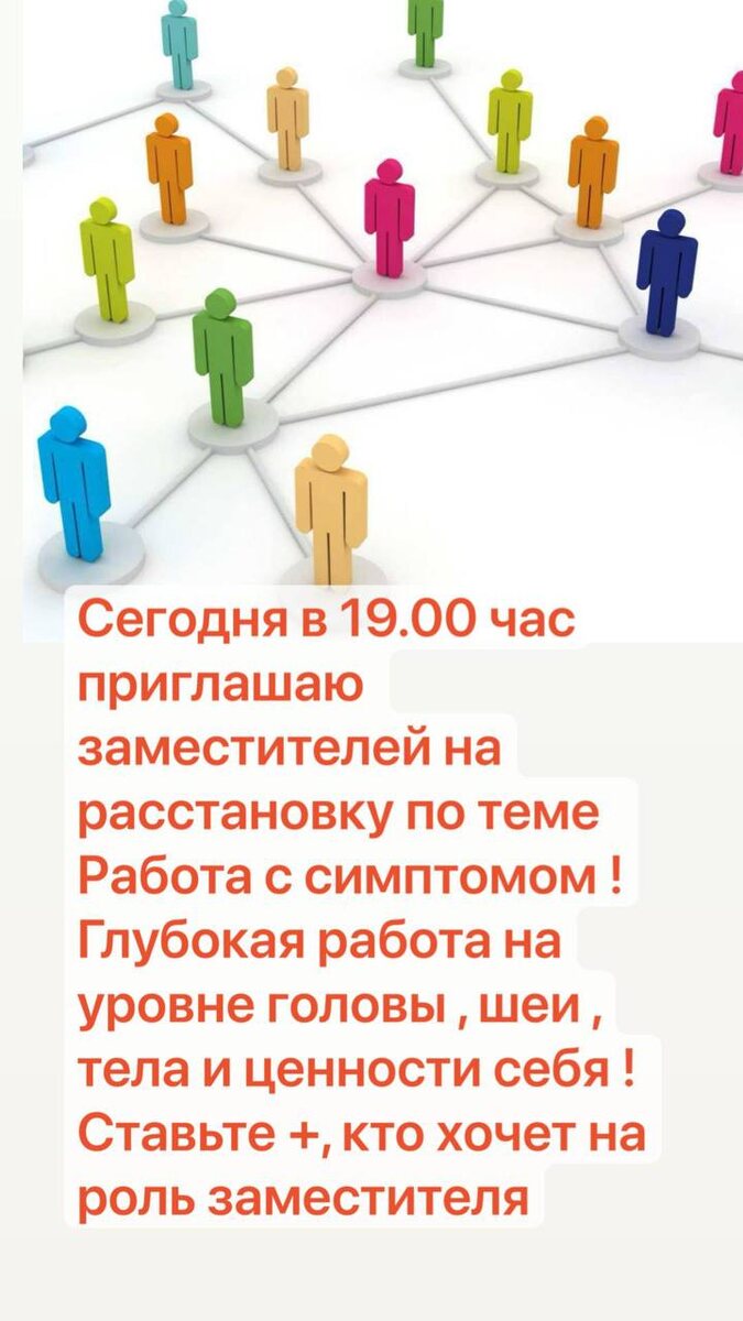Дорогие , приглашаю заместителей на расстановку сегодня в 19.00 час ! Напишите кому прислать ссылку на zoom для роли заместителя