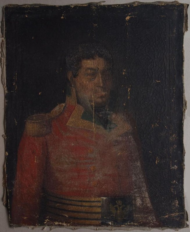 В Тверской областной картинной галерее хранится находящийся в неблестящем состоянии «портрет мужчины в красном мундире» работы неизвестного художника и без датировки