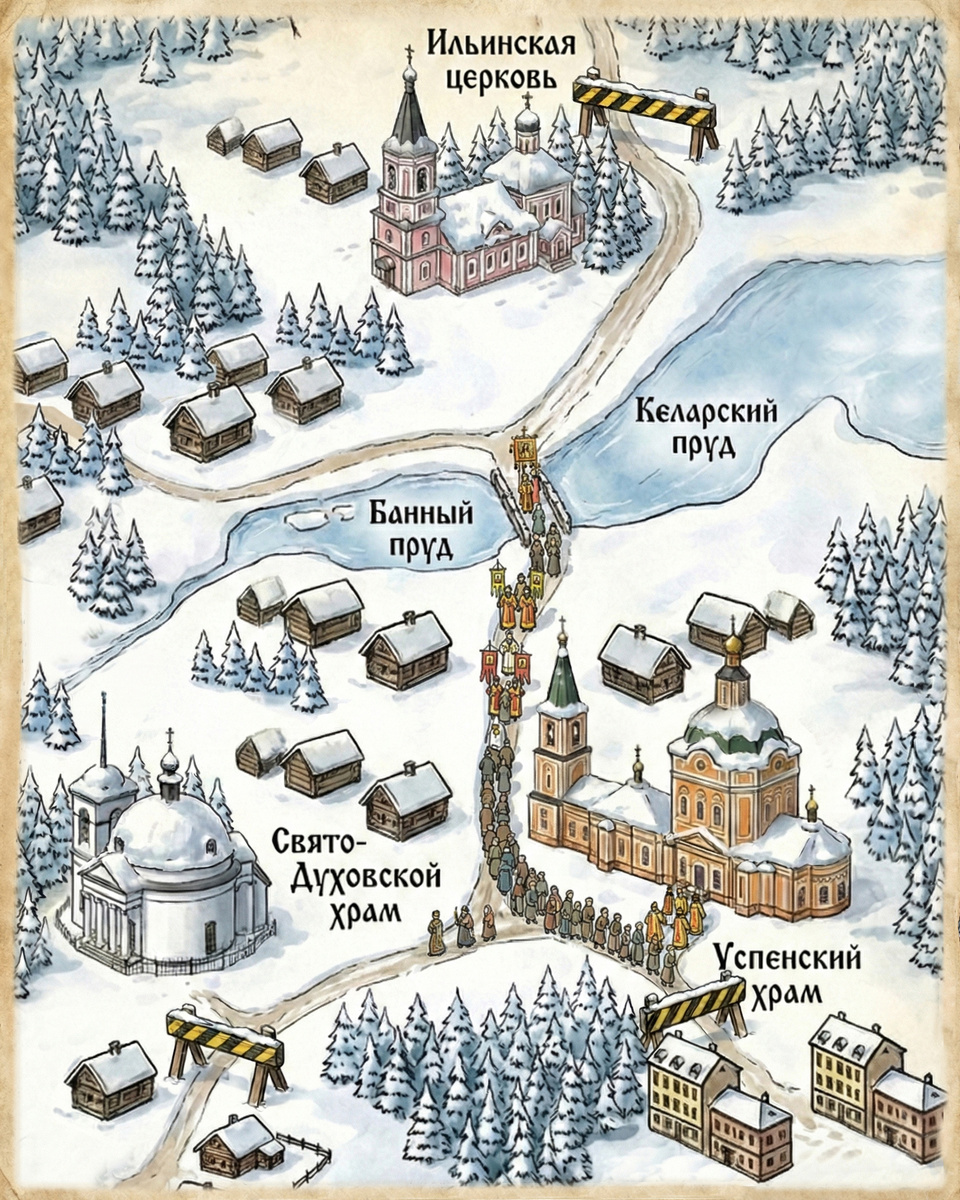 Вниманию водителей: 19 января в Сергиевом Посаде ограничат движение транспорта В связи с проведением крестного хода на Келарский пруд 19 января с 10:00 до 11:30 будет временно ограничено движение на следующих участках дорог: 🚧 Ул. Воробьёвская: от Свято-Духовского храма (д. 35) до дома № 50/42. 🚧 От дома № 50/42 по ул. Воробьёвской до Успенского храма (ул. Болотная, д. 39). 🚧 Ул. Клементьевская: до Келарского пруда (к Никольскому источнику). 🚧 Ул. Пушкарская: от Ильинского храма (д. 1/5) вдоль всей улицы до Келарского пруда.