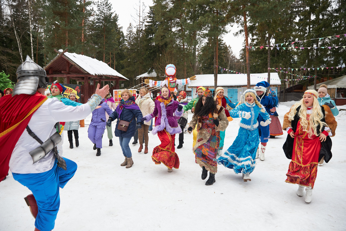 · Игровой разгуляй: Это сердце праздника. Но вместо разрозненных эстафет создайте большой командный квест «Похищение Весны». Чтобы её вернуть, гости проходят станции с традиционными забавами: бой мешками на бревне, перетягивание каната, ходьба на ходулях (детских, безопасных), командные хороводы. За каждое испытание — часть карты или ключ.