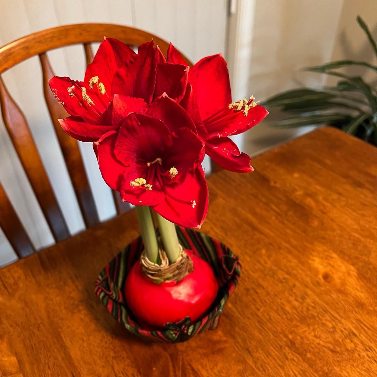 макушки уже торчит стрелка с бутонами. Это амариллис (или правильнее гиппеаструм) в воске — живое чудо, которое цветет практически само по себе! На самом деле это не так – луковицу специально стимулировали и, к сожалению, эта луковица будет цвести только через пару лет. Потому что ей нужно будет время для вхождения в нормальные циклы развития. Уход за луковицей не нужен. Во-первых, это флористический прием и подразумевается, что луковицу выкидывают после цветения, как букет. Во-вторых, луковица амариллиса-гиппеаструма (это не амариллис белладонна) имеет особенность – сразу после периода покоя она живет за счет накопленной энергии. После цветения (если хотите оставить луковицу) очистите от воска и посадите в хорошо дренированный субстрат с большим количеством различных разрыхлителей и начните поливать. Чуть выше есть пост про уход после периода покоя.