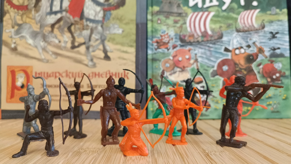 Ave любители солдатиков! Буквально один шаг остался до юбилейного сотого выпуска данной рубрики. Сегодняшний выпуск представляет Евгений Селецкий. Фотографии - Евгений Селецкий. Как-то раз разговорились мы с Сергеем Тарасовым, и выяснили, что нам обоим нравятся в игрушечных войсках именно лучники, даже некоторые отряды именно из-за них можем купить. А в другой раз пожаловался я Сергею, что везде разобрали индейцев от ARK Models, а мне оттуда лучники нужны. И вот, после этих бесед пришла ко мне от него посылка, а там много разных стреляющих солдатиков. Не мог удержаться, хочу и вам их показать. Об этом лучнике я даже не мечтал. Оригинал стоит кучу денег, а в приличном состоянии вообще гору денег, но вот копия - другое дело. Сам-то солдатик и сегодня смотрится отлично, жаль что в те времена так быстро вышла из строя его форма для изготовления. Дочка сфотографировала с разных сторон, так что у кого есть оригинал, могут сравнить ))) В детстве я любил этого индейца. Тут сыграли роль и налич