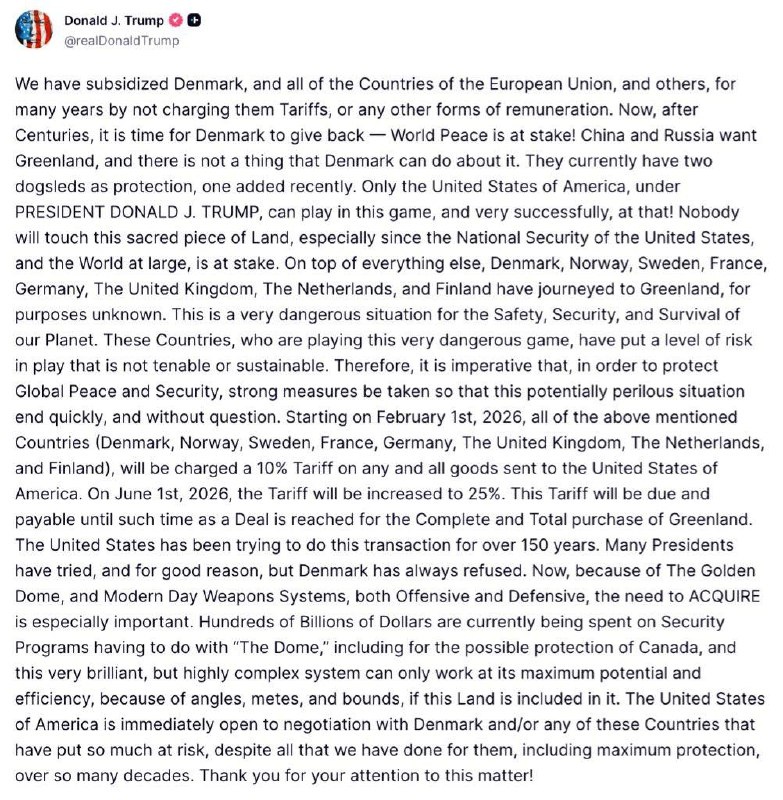TRUMP SLAPS TARIFFS ON NATO COUNTRIES OVER GREENLAND