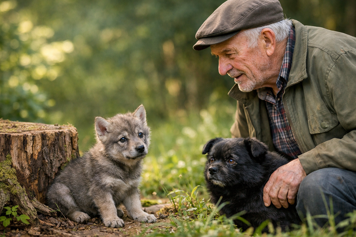 Дед Ваня принялся усердно кормить малыша. Колобок был для него хорошим и верным товарищем, который учил волчонка всем премудростям, хоть и собачьим. Забавно было смотреть, как они возятся вместе на траве. Ещё забавнее стало наблюдать их игры, когда волчонок подрос.