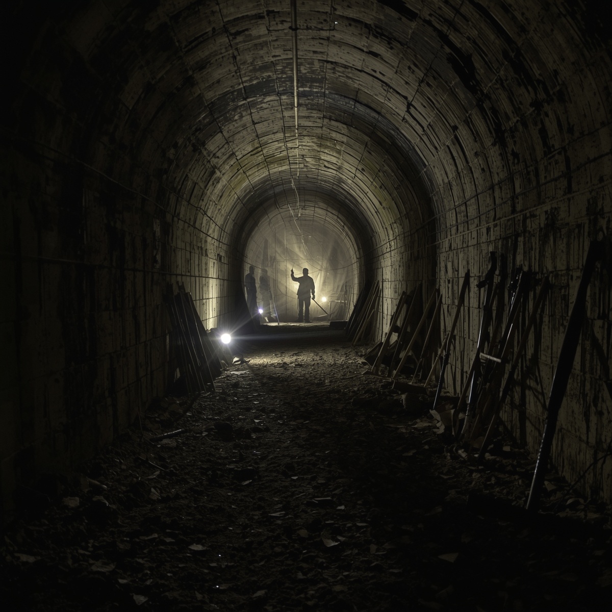 В своих отчётах на форумах они описывали, что в одном из самых удалённых бетонных залов, куда ведут заброшенные служебные пути, они несколько раз замечали движущиеся тени от фонарей, которых у них не было. Слышали отдалённый стук кирок и неразборчивые оклики. Ощущение присутствия группы людей было