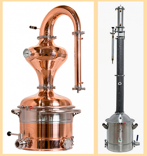 Выбор не в качестве, а в финальном продукте, который вы хотите получить. Представьте, что вы перегоняете яблочную брагу: Аспект Медный аламбик (шлем) Колонна (БК/РК) Вкус и аромат Напиток будет ПАХНУТЬ ЯБЛОКАМИ. Вы почувствуете букет: спелые яблоки, легкие цветочные и травяные нотки. Вкус полный, округлый, сложный. Напиток будет ПАХНУТЬ СПИРТОМ. Чистым, нейтральным. Аромат яблок будет удален на 90-95%. Вкус прямолинейный, чистый, без «тела». Крепость выхода 65-75% (после 2-й перегонки) 85-92% (БК за 1 раз) / 96% (РК) Чистота Органолептическая чистота (приятный вкус без оттенков серы/бражки) благодаря меди. Но сивушные масла остаются — они и формируют характер. Абсолютная, лабораторная чистота от сивушных масел. Спирт как дистиллированная вода во вкусо-ароматическом плане. Процесс Медленный, интуитивный, «ремесленный». Контроль по температуре и, в основном, по запаху. Технологичный, требующий расчетов. Контроль по точным температурам и флегмовому числу. Что можно сделать с п