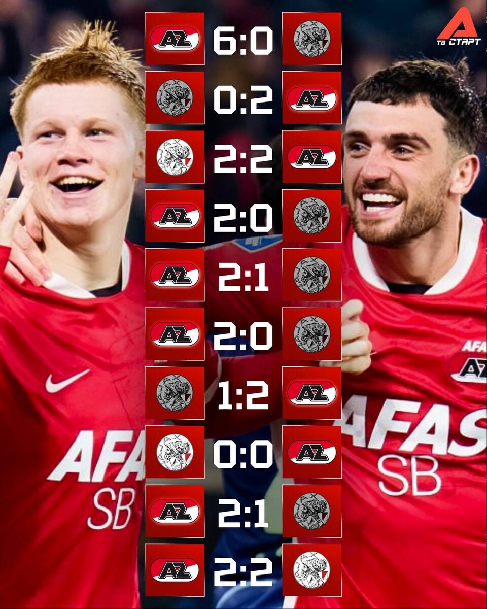 😤🤔 А вы знали, что «Аякс» не может победить «АЗ» уже в десяти матчах подряд