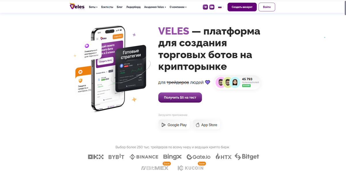 Veles - это платформа, которая берет на себя всю рутинную работу по торговле на криптовалютных биржах. Если кратко, боты платформы торгуют за вас на вашей бирже (открывают и закрывают позиции), за это платформа берет часть прибыли (без обязательных подписок и прочего)