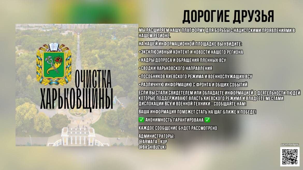 ! Хотим порекомендовать информационный канал "Очистка Харьковщины" На данной площадке увидите множество различной и полезной информации Ссылка на канал ⬇️ https://t.me/Ochistka_Kharkovshchiny