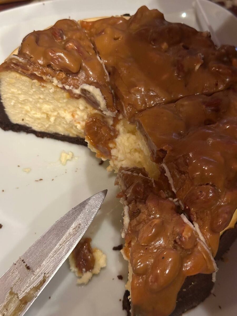 🤟🏽 РЕЦЕПТ (высота 6 см, диаметр 18 см) Сырная масса: -Творож. сыр (650 г) -Кукуруз. крахмал (15 г) -Сахар (150 г) -Сливки 33% (70 г) -Ванильный экстракт -Яйца С1 (3 шт) -Белый шоколад (105 г) Песочная основа: -Шоколад.печенье (300 г) -Слив.масло (50 г) -Молоко ( 25 г) Карамель: -Сахар ( 150 г) -Сливки 33% (150 г) -Соль -Слив. масло (30 г) -Жареный арахис (100-150г) Рецепт карамели: Сахар высыпаем на сковороду с толстым дном и равномерно его распределяем. Готовим карамель на небольшом огне, сначала сахар не мешаем, а дожидаемся момента когда он начнет таять посередине. Только после этого аккуратно перемешиваем сахар лопаткой, топим его до янтарного цвета и до полного растворения кристалликов. Вливаем порционно горячие сливки постоянно помешивая, солим по вкусу и закидываем кусочек сливочного масла. Варим так ещё около минуты, добавляем арахис и готово. Приготовление: Измельчаем печенье, добавляем растопленное слив.масло, молоко и перетираем. Дно формы застилаем бумагой и фольгой,