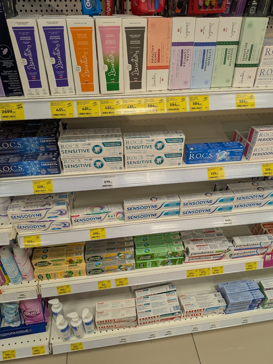 Вот почему всегда так получается: специально же пошла 15 числа в "Магнит Косметик", чтобы купить все нужное с дополнительной скидкой, а через несколько дней все равно пришлось возвращаться, ибо чего-то да не хватает дома. И, знаете, не пожалела совсем, что спонтанно заглянула, потому что и в обычные дни мне вполне хватает акций. Да, покупаю я заметно меньше в эти моменты, но не всегда ведь есть возможность дожидаться определенного дня, некоторые товары нужны прям в моменте. А еще меня порадовало то, что нужен был мужской шампунь, от "Aura" такой как раз был с очень большой скидкой и стоил всего 78 рублей, хотя раньше мы покупали его почти за 200. В общем, захотелось поделиться найденными желтыми ценниками, обсудить их с вами, а заодно, если получится, обменяться мнениями и о показанных товарах, для меня некоторые из них новинки, потому все рассуждаю стоит ли тратиться или лучше пройти мимо: Если честно, с каких-то пор зубные пасты стали для меня не самой комфортной покупкой, т.к. покуп