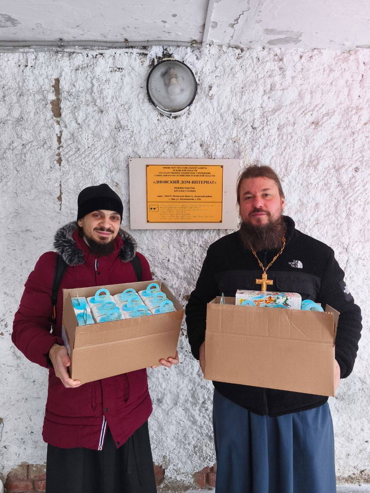 9 января 2026 года, в Святочные дни Христова Рождества, настоятель храма Архангела Михаила города Дно протоиерей Сергий Андреев и клирик храма иерей Антоний Пауков посетили дом-интернат города Дно. Священнослужители поздравили персонал интерната и его постояльцев с наступившим великим праздником пришествия в мир Господа Бога и Спаса нашего Иисуса Христа и пожелали всем помощи Божией в грядущее Новолетие. Батюшки исполнили Рождественские песнопения и подарили каждому иконку и сладкий подарок.