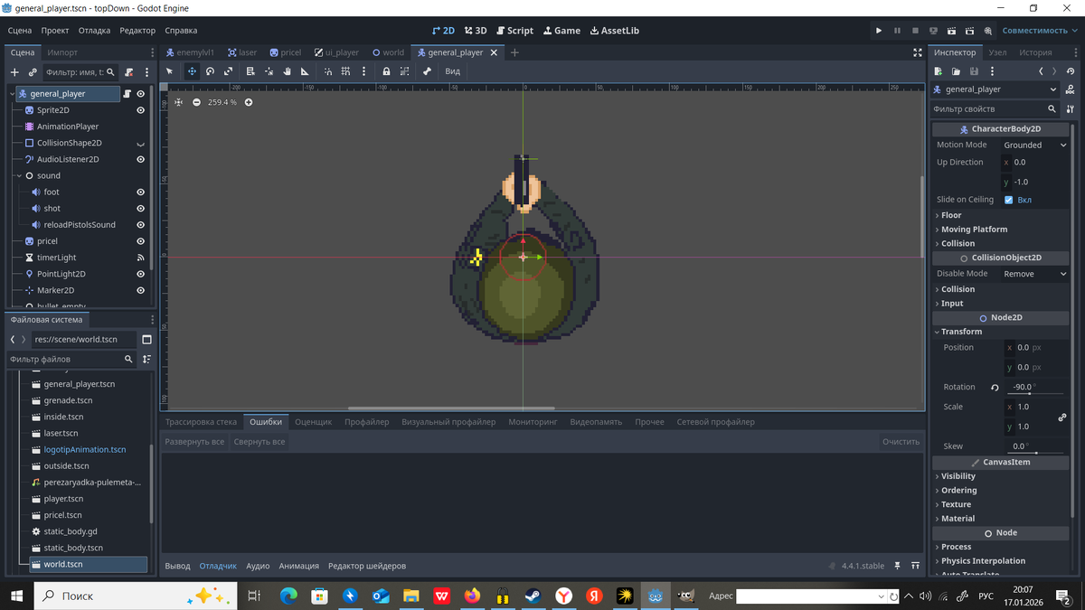 Спрайт pricel отвечает за спрайт прицела . Кстати вместе DeepSeek сделали разброс пуль и прицел увеличивается когда разброс увеличивается. Но когда делал с нейросетью, то какие то несложные механики еще все хорошо, но стоит только проекту увеличиться, то проект начинается сыпаться и исправляешь какие то моменты и в итоге делаешь своими руками так как надо. Я все таки решил что не буду пользоваться нейросетью.