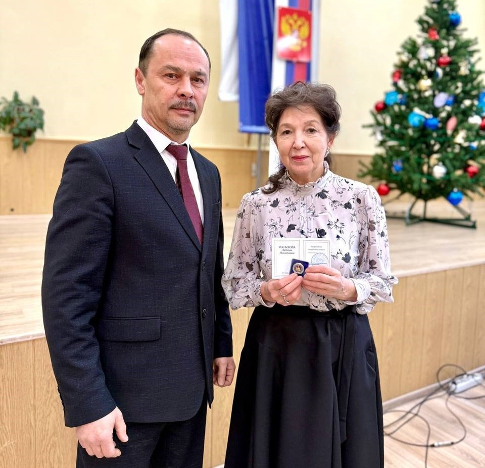 В тг-канале правительства Забайкалья пишут, что Любовь Фатыхова работает педагогом уже 44 года. Директор школы Ольга Калганова отметила, что Любовь Накиповна помимо знаний воспитывает в детях открытость, честность, дисциплину и патриотизм, активно занимается поддержкой бойцов СВО. Коллеги также отмечают, что за годы работы завучем начальной школы она внесла значительный вклад в организацию учебного процесса, а сейчас передает свой опыт молодым учителям. Нагрудным знаком «За верность профессии» Минпросвещения РФ награждает педагогов, которые работают в сфере образования не менее 35 лет. Фото: глава Карымского округа Олег Павлов, Любовь Фатыхова 📌📌📌📌📌 «Чита.Ру» в MAX