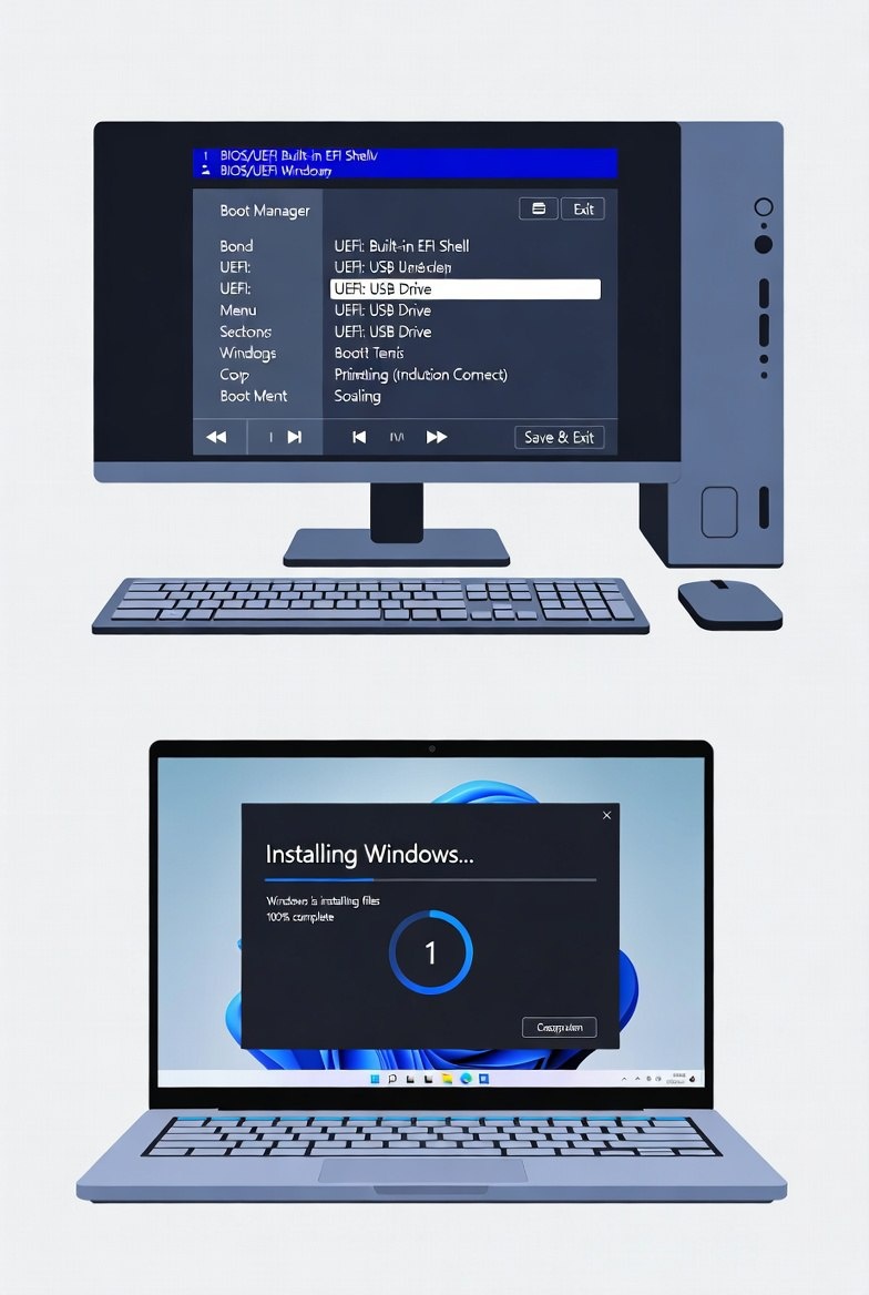 Скачиваем утилиту Rufus (https://clc.to/SEKXxw) и создаем загрузочную флэшку с образом Вставляем флешку, выбираем ее в Rufus, нажимаем “Выбрать” и указываем скачанный ISO Windows. Для нового ПК ставим: Target system — UEFI, Partition scheme — GPT. Нажимаем “Старт” — и Rufus выведет дополнительные галочки. Советую поставить “Убрать требование интернет-подключения и учётной записи Microsoft” и “Отключить автоматическое шифрование устройства на этапе установки” для ускорения. Заходим в BIOS, и включаем режим UEFI, выключаем Legacy/CSM (обычно стоит умолчанию, но лучше проверить). - Перезагружаем систему и начинаем установку Windows. - На этапе ввода ключа - выбираем “У меня нет ключа”. - На этапе настроек конфиденциальности отключаем В