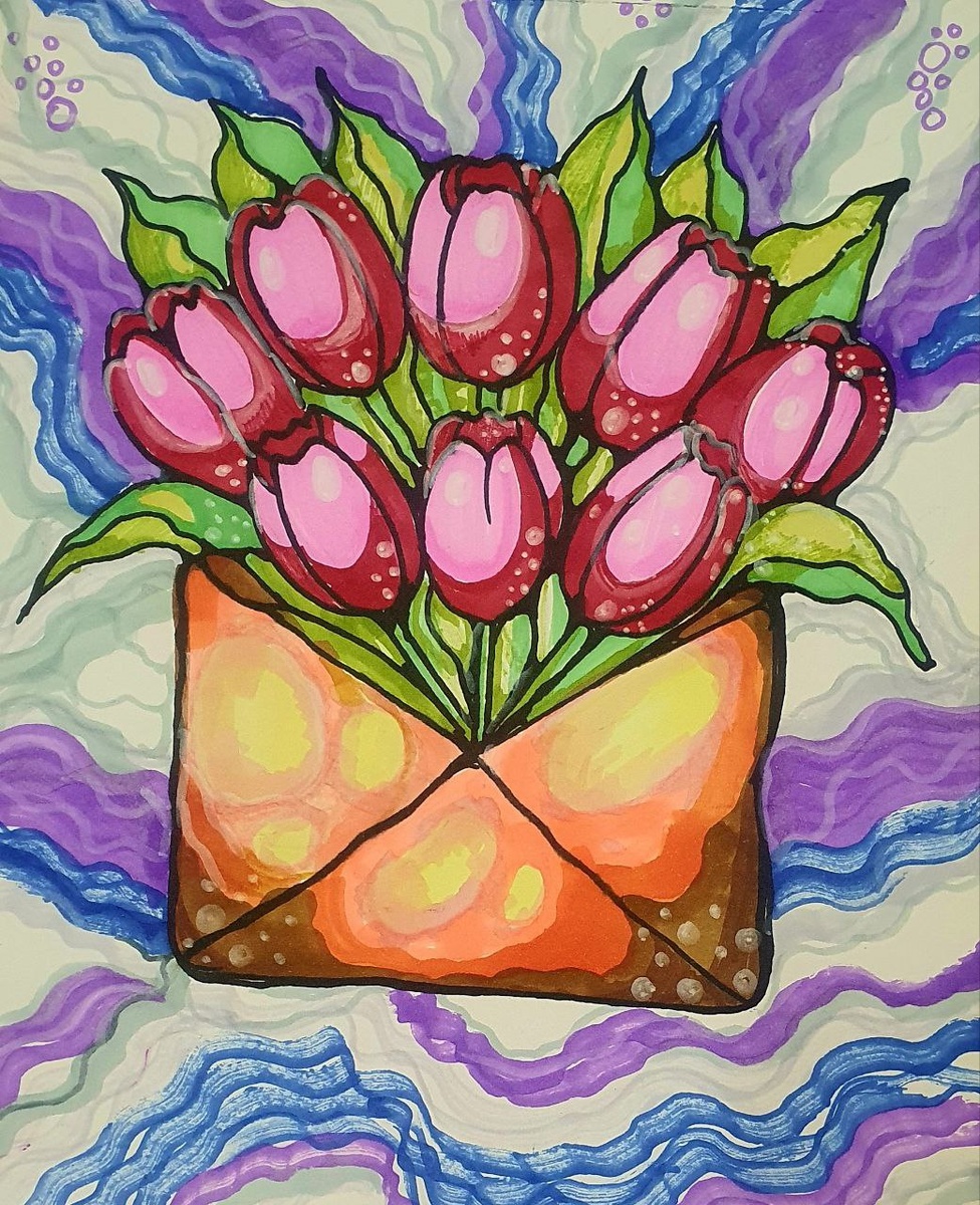 Моя завершающая работа по курсу Н-Арт, не думала, что фломастерами тоже можно работать!!!! Сделаю еще одну в карандаше!!!