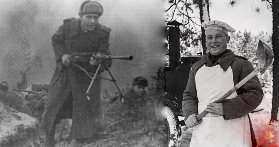 Чего только стоит крайне дерзкая вылазка одного бойца с термосами наперевес, который, если посмотреть под определенным ракурсом, по факту лез прямо в пасть к немецкому зверю, и это при том, что на тот момент времени он числился "всего лишь" поваром (хотя слово "всего лишь" здесь не совсем уместно, ведь советские повара порой давали фору даже прославленным бойцам передовой).