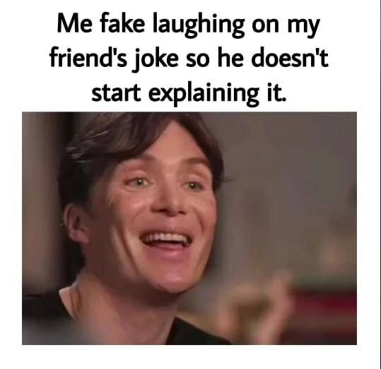 Мой фейковый смех, чтобы мой друг не начал объяснять свою шутку