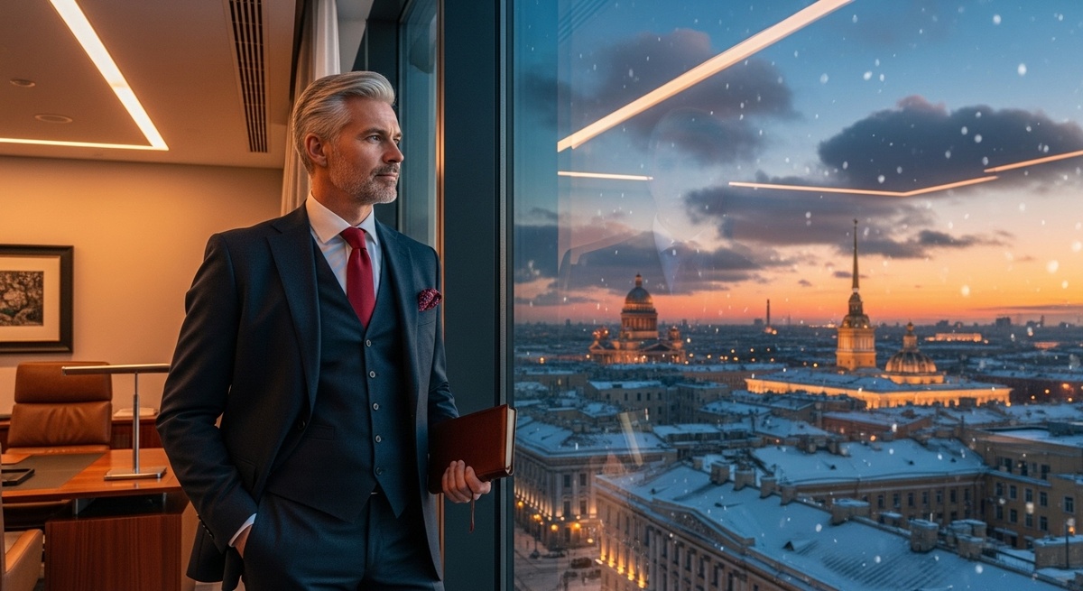 Петербург встречал декабрьским сумраком — тем особенным, когда небо словно сливается с мокрым асфальтом, а фонари зажигаются уже в три часа дня. Дмитрий Павлович Соколов стоял у панорамного окна своего офиса на двенадцатом этаже и смотрел на Неву, чьи свинцовые воды лениво несли редкие льдины. Телефон вибрировал в кармане его безупречного итальянского костюма.