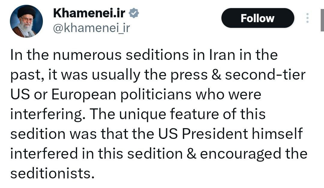 Iran's Supreme Leader on 'unique feature of THIS sedition':