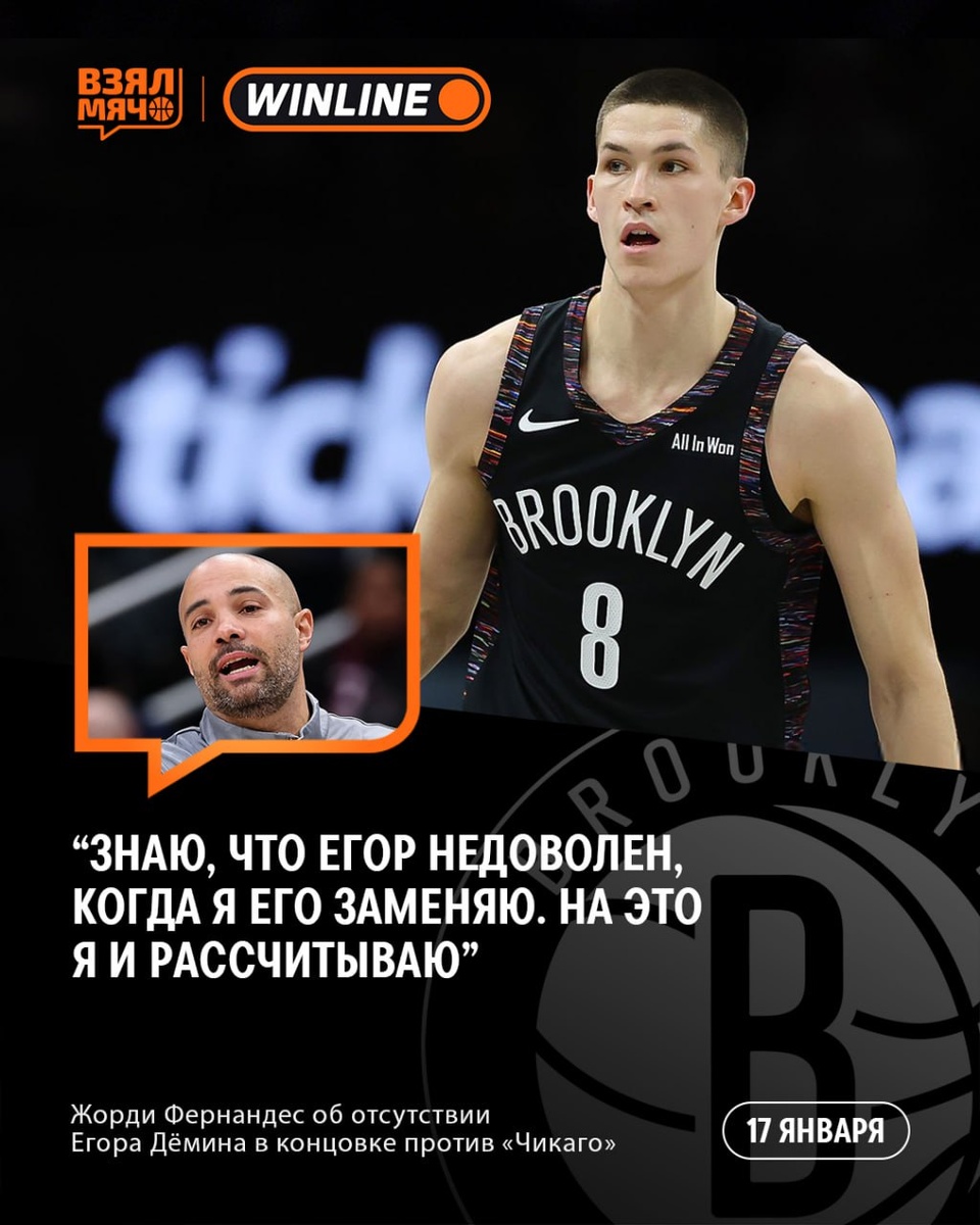 ? Главный тренер «Бруклина» объяснил, почему в концовке победного матча с «Чикаго» он убрал Дёмина и выпустил Нолана Траоре: 🗣 «Мне было нужно, чтобы Егор задавал тон жёсткой игрой в защите, и мы с ним об этом говорили. Я знаю, что он на это способен — в конце матча с „Новым Орлеаном“ он справился с опекой Трея Мерфи. Жёсткость, активное давление на мяч — это было здорово. Я знаю, что он может. И когда я вижу, что в начале четверти или после перерыва он не выходит с таким уровнем агрессии... то же самое и в конце игры. Я почувствовал, что нам это было нужно. Но я очень доволен обоими игроками. Тем, как они играют, насколько самоотверженны. Так и происходит рост. Я знаю, что Егор недоволен, когда я его заменяю. На это я и рассчитываю. Я уверен, что он способен показывать именно такой уровень в защите: переключаться, сдерживать более крупных игроков, проникать в „краску“. А его главные козыри — бросок и умение выйти на позицию для трехочкового — у него никуда не делись». Дёмин наб
