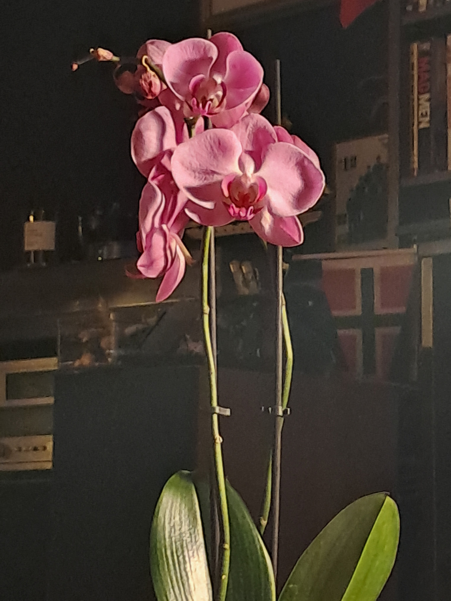 Смотрю в интернете всякую ерунду. Друзья принесли мне орхидею. Любуюсь ею.
