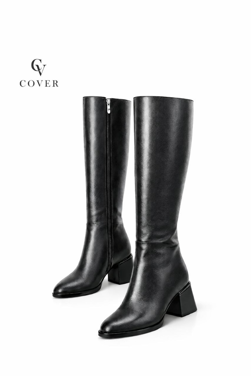 Классические сапоги из черной гладкой кожи будут актуальны не один сезон. Элегантная и практичная пара.