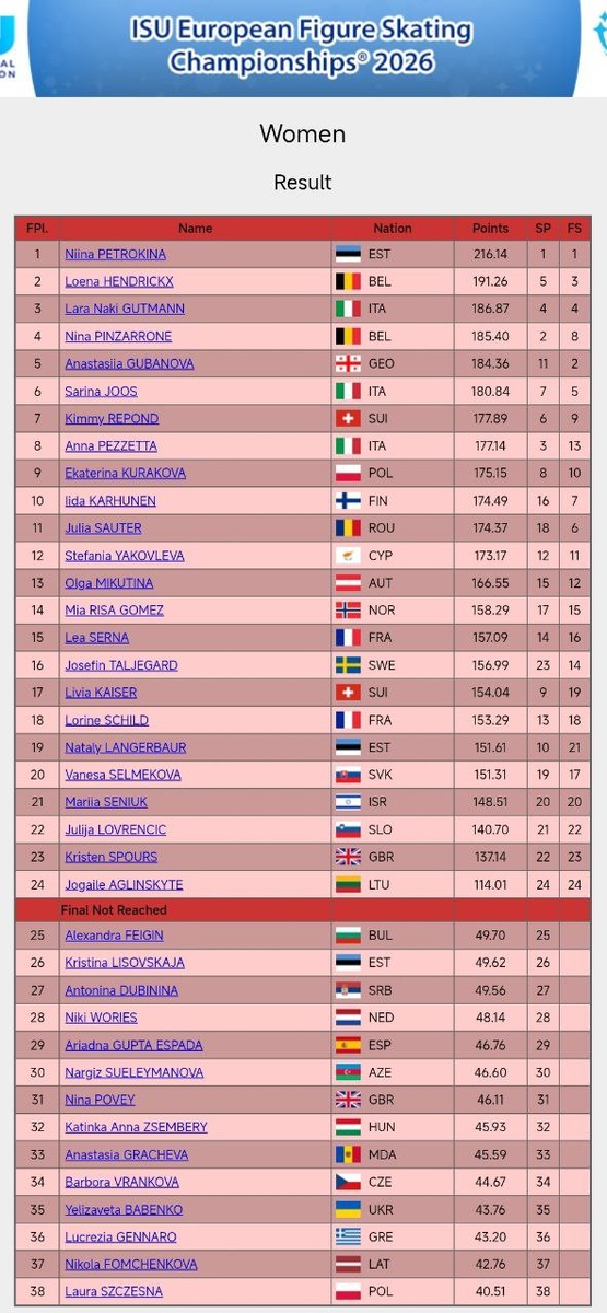 Зрелищный, заряженный прокат, хотя и без 3-3. Первым был каскад из двойного акселя и тройного тулупа. Во второй половине программы каскад из тройного лутца, двойного акселя и двойного тулупа и сразу ещё один из тройного флипа и двойного тулупа. Зрители просто стоя аплодировали. Оценка - 145,53 (216,14) балла - первая по произвольной и теперь двукратная чемпионка Европы.