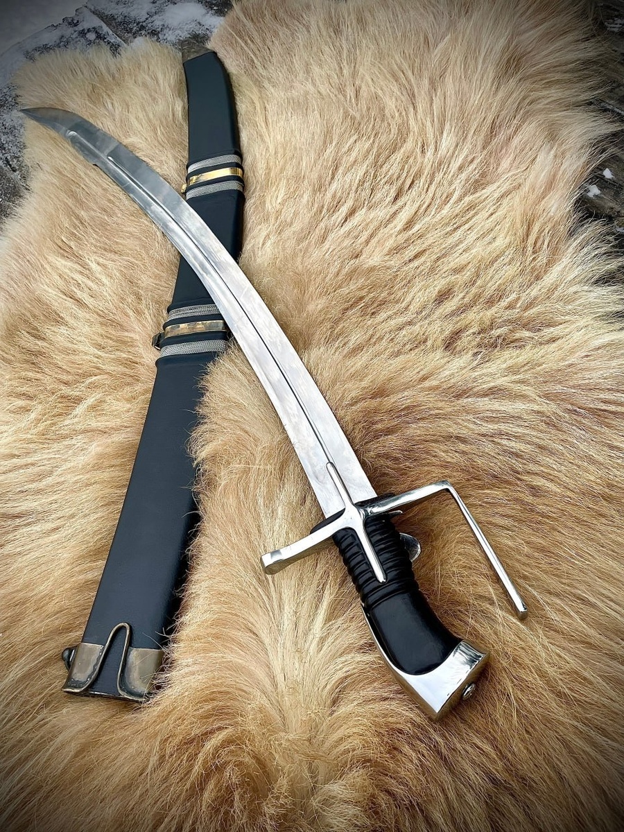 Готов очередной хищный «Клыч»! ⚔️🛡 Как всегда — штучное исполнение. ✅ На этот раз набор на рукояти отполирован для большего контраста и гармонии с блестящим клинком. ✨ Это восточная сабля на русско-европейский манер. Свой пик популярности этот тип сабель начал обретать ещё в далёком XV веке. Он очень широко использовался во многих странах Европы, включая нашу необъятную Родину. 🇷🇺 Данный экземпляр имеет гарду с «Палехом» — специальное боковое кольцо для большого пальца. 👍 Подойдёт только правше. 💪 #меч В этом посте есть большое видео, которое не загрузилось в Дзен. Откройте оригинал поста в телеграме, чтобы его посмотреть