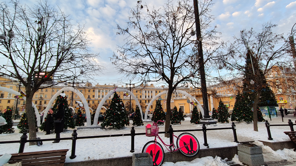 А в качестве прогулки я решила съездить за яблоками на Сенной рынок и заодно увидеть , как украшена в этом году Сенная площадь. Читала про бабочек и стрекоз. И конечно посмотреть надо было! Скоро, наверное, и уберут. Праздники уже практически прошли. Ну если до китайского НГ или японского не оставят😀. Когда там они будут?