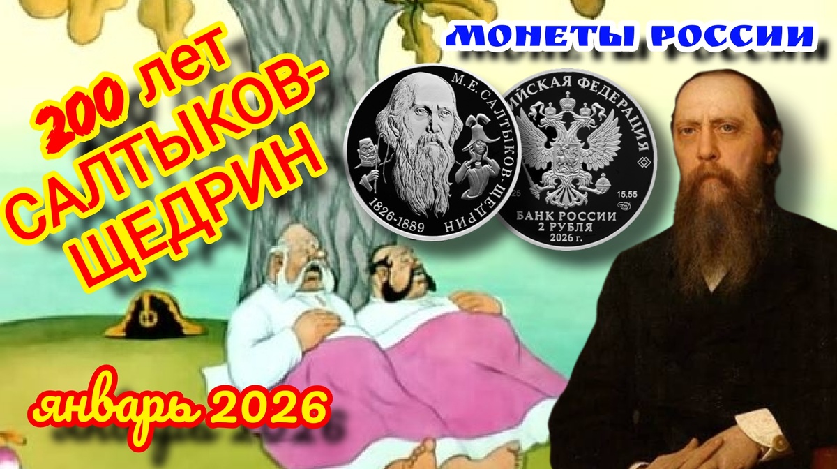 20 января 2026 года Банк России выпустил в обращение памятную монету «ПИСАТЕЛЬ М.Е. САЛТЫКОВ-ЩЕДРИН, К 200-ЛЕТИЮ СО ДНЯ РОЖДЕНИЯ». Монета вышла в серии «Выдающиеся личности России».