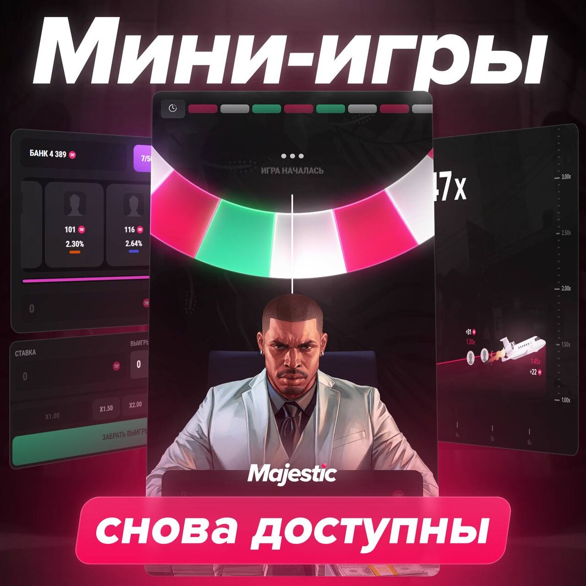 🥰 Мы завершили технические работы — можете возвращаться за удачей и красивыми выигрышами в Краш, Джекпот и Рулетку. Сыграть можно в меню F2 >> Мини-игры 🍸 ❤️ Majestic Role Play