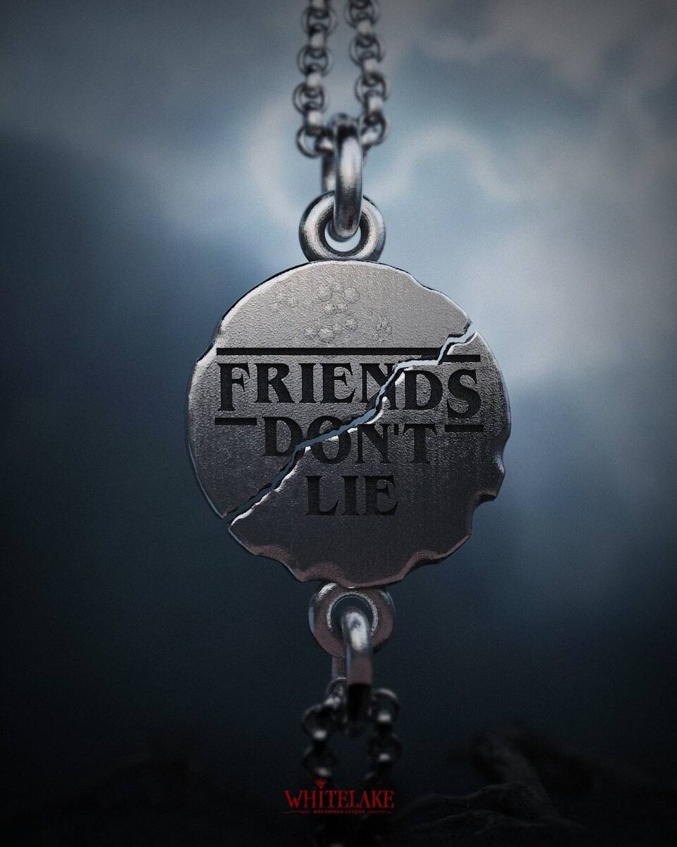 Парные кулоны «Friends don’t lie» и кулоны с вафлей Оди выпустили ювелиры из White lake shop.