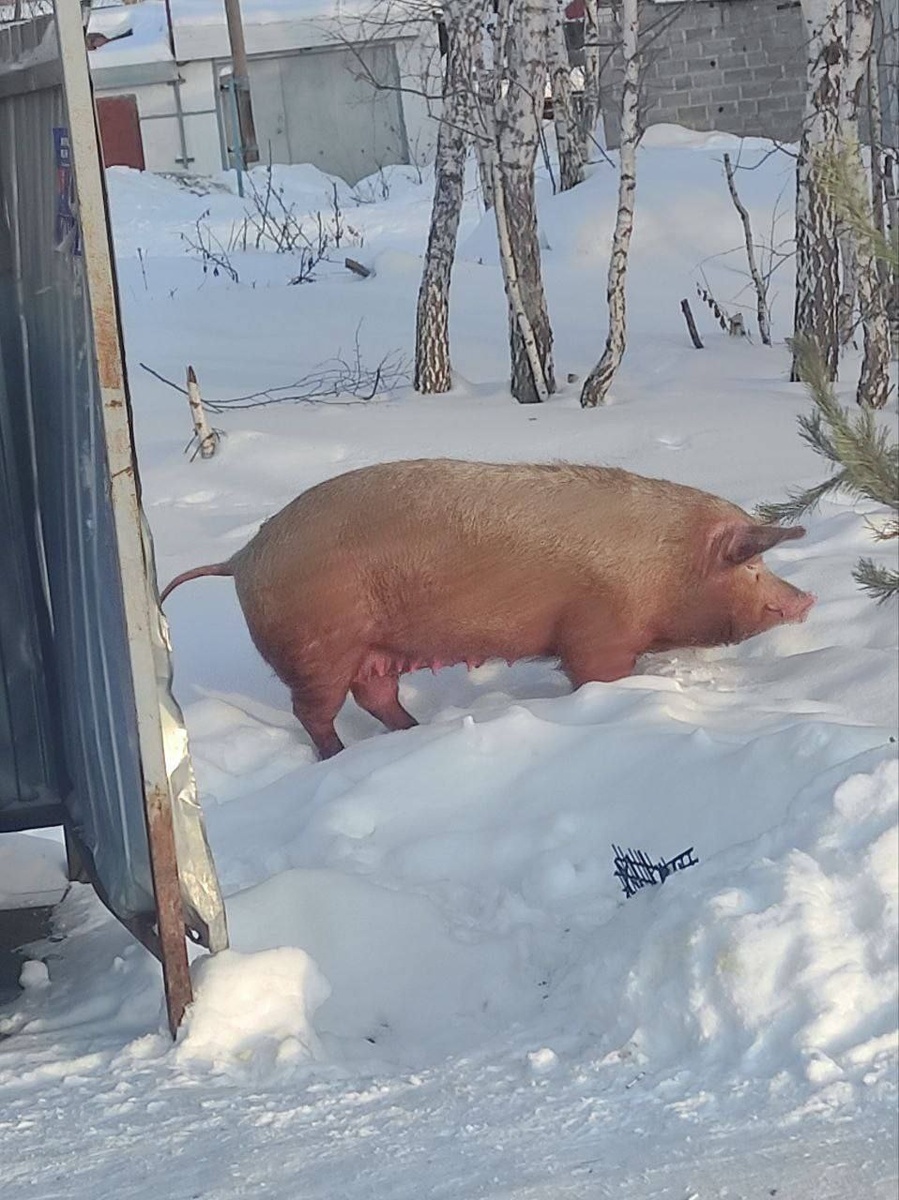 Кабанчиком метнулась по своим делам свинка в поселке Богандинский. При этом сейчас на улице - 15°.