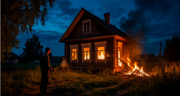 Дом горел. Родной дом, который отец строил своими руками. Каждое бревно, которое помнило его прикосновение, теперь корчилось в агонии. Красный петух клевал крышу, разбрасывая искры в чёрное небо.