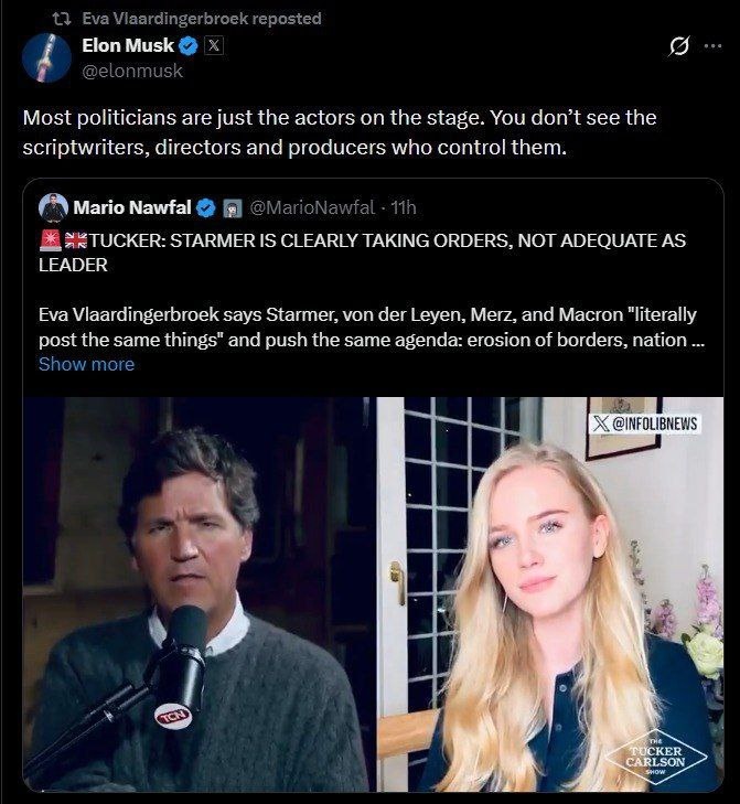 'Most politicians are actors, we don't see the scriptwriters, directors and producers who control them' — Elon Musk
