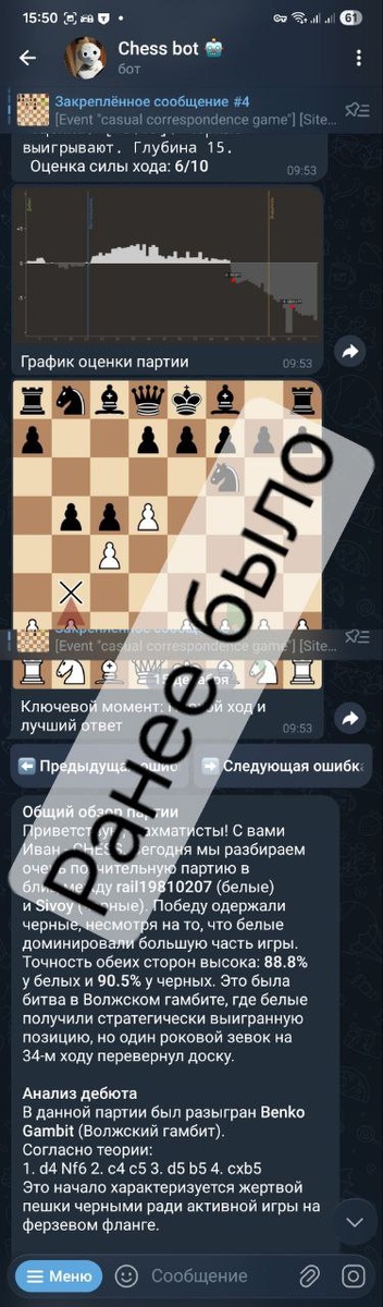 Те, кто пользуется ботом, скажите, какое дальнейшее развитие вы бы хотели увидеть. Три варианта: первый - вернуться, как было, где в боте происходил анализ; второе - работать над текущим дизайном; и третье - сделать форк Lichess.org и туда добавить возможность саммаризации от ИИ и переход в LLM-арену + Слепого самурая? Следующим сообщением я добавлю опрос, проголосуйте, пожалуйста.