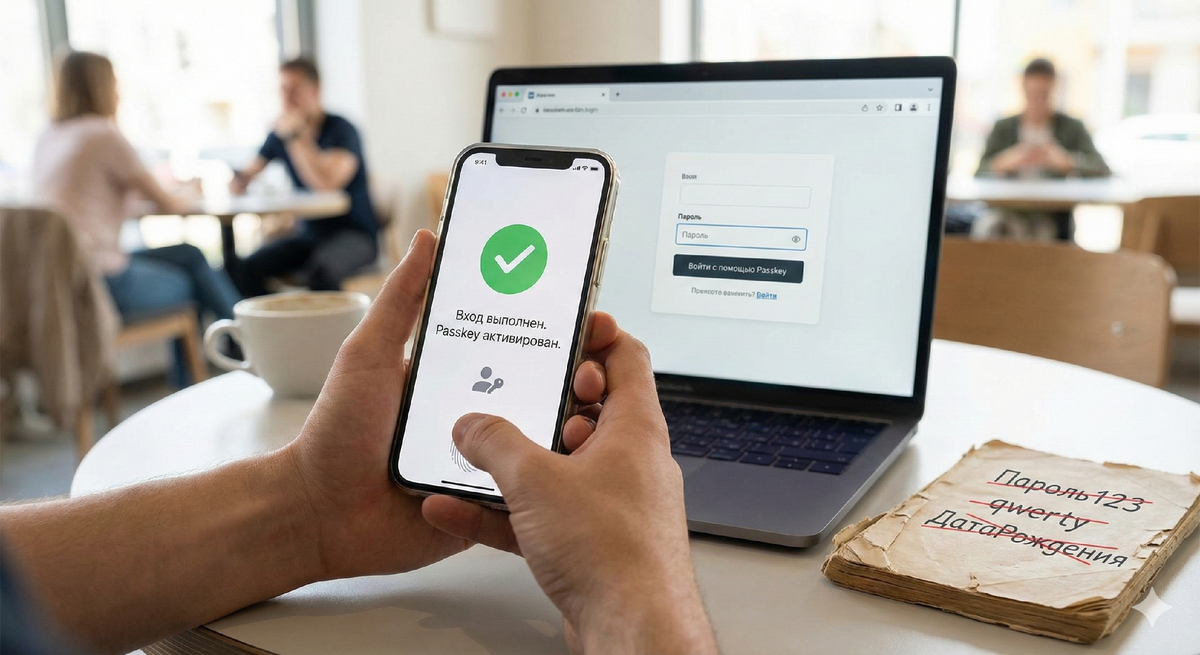 Вашим «паролем» становится само устройство (смартфон или компьютер). Сайт отправляет запрос, вы подтверждаете его прикладыванием пальца к телефону — вход выполнен. Ключ хранится только у вас, сервер его не видит. Кого это касается Как это влияет на жизнь Что можно сделать