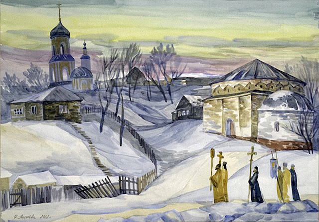 Когда они ушли, налиты были св. водой несколько ушатов и отнесены в Кремль и по церквам. Напоследок народ, мужчины и женщины, побежали к реке в великом множестве, чтобы окунуться в ней. Не смотря на стужу, некоторые женщины совали в воду маленьких нагих детей. Туда же бросались и нагие мужчины, осквернившие себя какими-нибудь мерзкими грехами, в том мнении, что Св. водою смывается осквернение. Кроме того, все уносили по кружке, или по ведру, воды на дом к себе и в церкви.