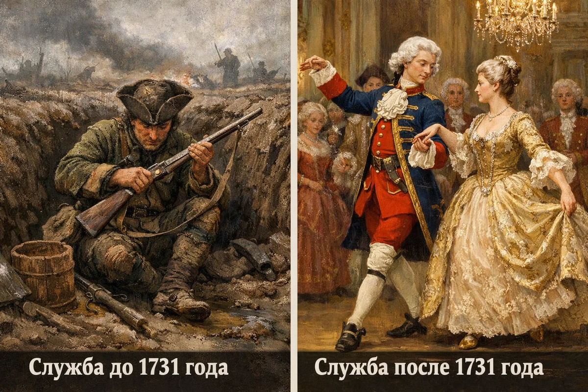 Пётр I заставлял дворян начинать службу солдатами. Дворянам это не нравилось ("Фу, казарма!").