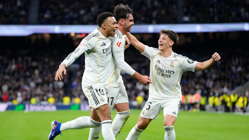 Мадридский «Реал» победил «Леванте» в домашнем матче 20‑го тура чемпионата Испании по футболу. Встреча в Мадриде завершилась со счетом 2:0 в пользу хозяев. Голы забили Килиан Мбаппе, реализовавший пенальти, и Рауль Асенсио. Столичная команда впервые выиграла под руководством Альваро Арбелоа. «Реал» одержал четвертую победу подряд в Ла Лиге, команда с 48 очками располагается на второй позиции турнирной таблицы. «Леванте» (14 очков) идет 19‑м. В следующем туре «Реал» 24 января сыграет на выезде с «Вильярреалом», «Леванте» днем ранее примет «Эльче». Прямые трансляции матчей чемпионата Испании смотрите на каналах группы «Матч», а также сайтах matchtv.ru и sportbox.ru. «Реал» (Мадрид) — «Леванте» (Валенсия) — 2:0 (0:0) Голы: Мбаппе, 58 (с пенальти) (ВИДЕО). Асенсио, 65 (ВИДЕО).